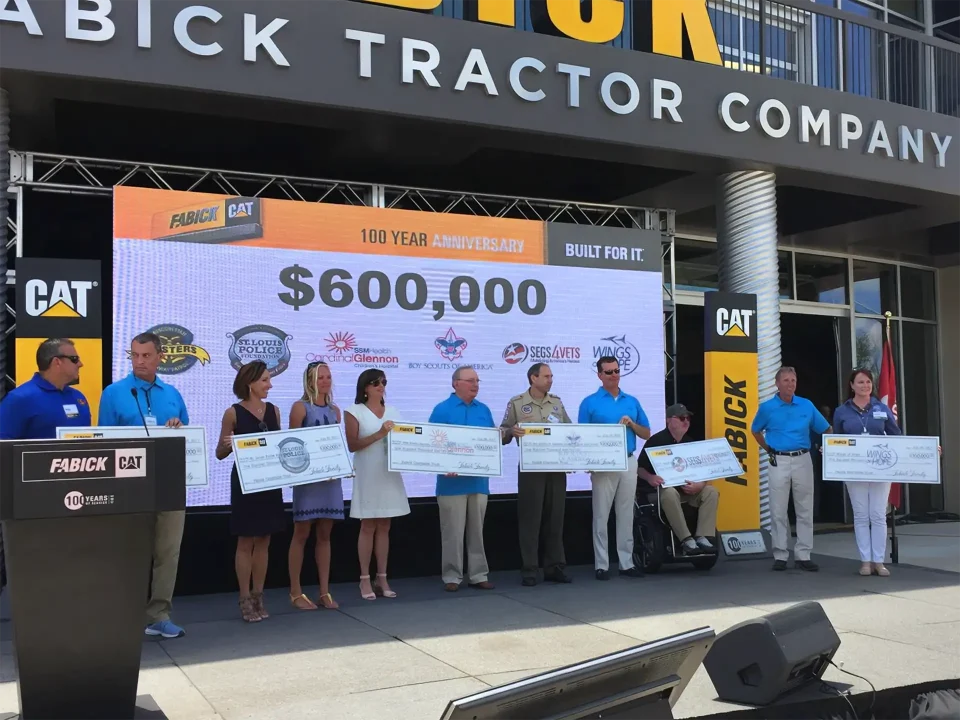 When we were asked to attend Fabick Cat’s 100th Anniversary Celebration on July 29, we were honored and proud to be part of the festivities. After all, Fabick Cat and the Fabick family have been generously supporting Wings of Hope since Joe Fabick joined three others in founding Wings of Hope in the early 1960s. But we had no idea that we would be one of six charities presented with a $100,000 check. “I was completely stunned,” Wings of Hope Vice President Laura Helling says. “The Fabick family has always supported Wings of Hope – and their generosity, to Wings of Hope and to the many charities they support, is a solid testament to the Fabick family’s commitment to making sure their communities remain strong. Wings of Hope is absolutely thrilled with this donation, and we are excited about the real impact it will make in the lives of the people we serve.”