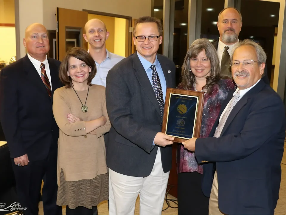 The Greater St. Louis Flight Instructors Association (GSLFIA) honored Wings of Hope at its awards banquet at St. Louis Lambert International Airport on October 28. GSLFIA Vice President Dick Horowitz — who also is chief MAT pilot for Wings of Hope — presented Wings of Hope the Spirit of St. Louis Award, which recognizes individuals and organizations for exemplary support, dedication and service to aviation and aviation organizations.
