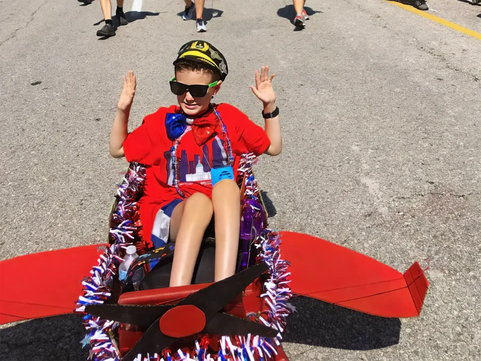 Future Wings of Hope pilot, Mason, led the Wings of Hope balloon down the streets of St. Louis in America’s Birthday Parade. We fly Mason to St. Louis Children’s Hospital for treatment of clubfeet and he makes the entire Wings of Hope family smile whenever he’s in town. On his last visit, Mason gifted us a copy of his new book, “In My Feet.” Mason wrote and illustrated the book, which tells the story of his battle with clubfeet and how Wings of Hope has helped him on his journey to walking. So proud of this young author and future aviator!