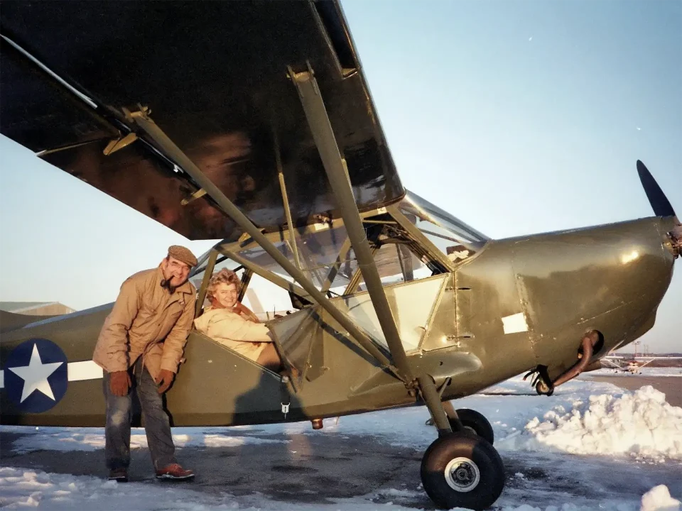 John recalls his dad picking up a World War II-era Stinson L-5 Sentinel in California to fly back to Lewis University — and worrying about his father flying the long trip to Illinois solo.