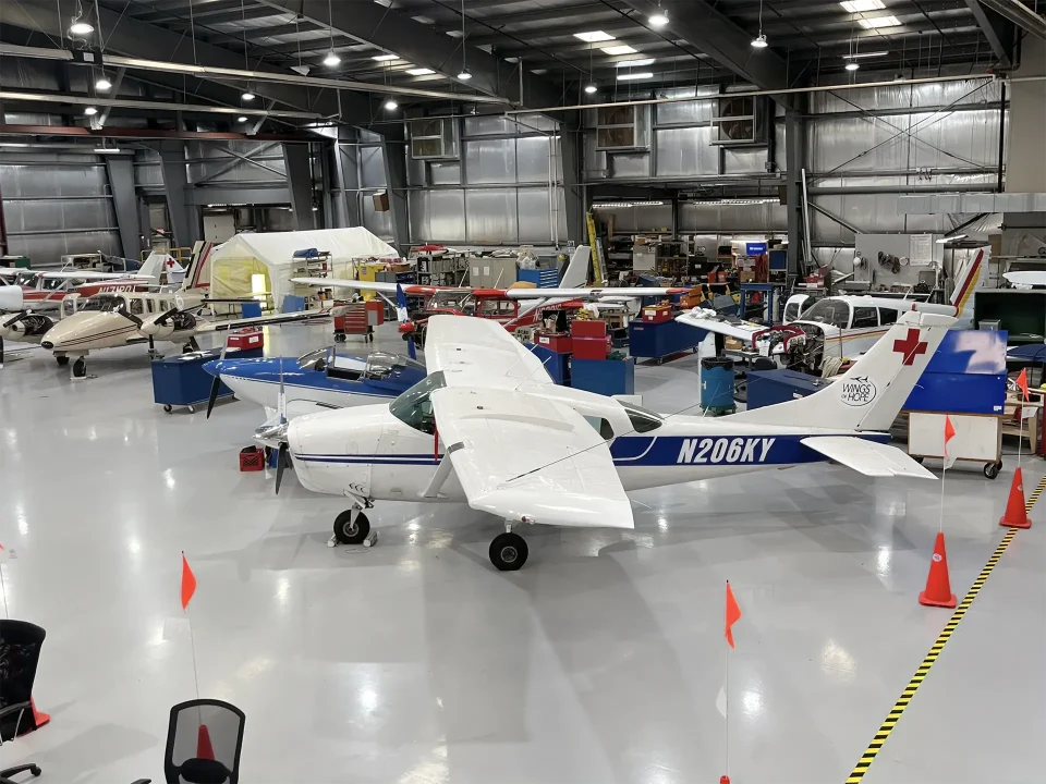 A quick walk through the Wings of Hope hangar reveals an exceptionally clean and bright space dotted with planes in various states of repair and a crew of licensed mechanics and volunteers making sure the aircraft are well maintained.