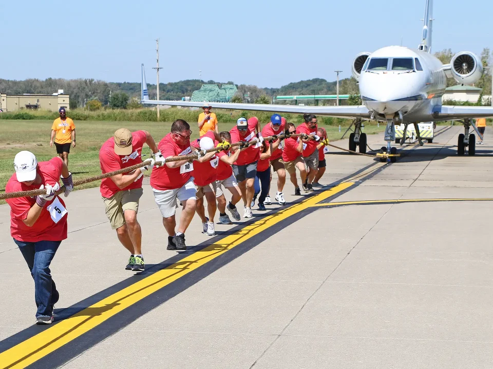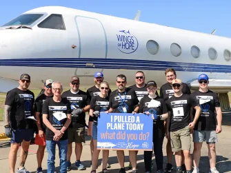 Wings of Hope’s 2nd Annual Pulling for Hope event was a huge success. Eleven enthusiastic teams participated in this friendly competition to record the fastest time pulling a 25-ton Gulfstream III jet 60 feet across the taxiway outside the Wings of Hope hangar.