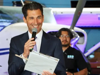 While guests enjoyed hors d’oeuvres and drinks among aircraft in the hangar, they were treated to exhibits showcasing our SOAR into STEM program for youth and an inspiring presentation by former MAT patient Claire Biangardi, who was joined onstage by her mother, Marianne. Claire was diagnosed with a rare immune disorder as a toddler and flown by Wings of Hope to Cincinnati Children’s Hospital for a series of treatments. Now 14, she is a healthy teenager who serves as an ambassador for Wings of Hope, Make-a-Wish® Missouri & Kansas, and Cincinnati Children’s Hospital.