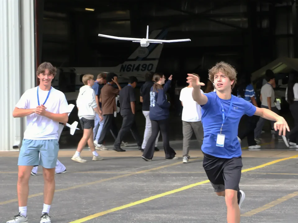 Hands-on activities included building gliders, practicing communicating with air traffic control during a simulated exercise that mirrors airport traffic patterns, installing an electrical system on a foam aircraft, and working with aircraft mechanics on some of the essential skills used in maintaining planes.