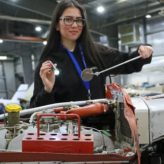 Hands-on activities included building gliders, practicing communicating with air traffic control during a simulated exercise that mirrors airport traffic patterns, installing an electrical system on a foam aircraft, and working with aircraft mechanics on some of the essential skills used in maintaining planes.