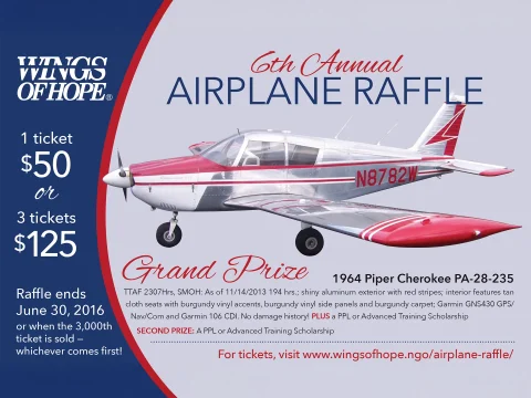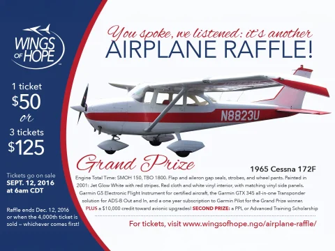 Our April 1 airplane raffle sold all 5,000 tickets in 11 hours – and raised more than $300,000 to support Wings of Hope. The grand prize winning ticket will be drawn on May 26. “Our airplane raffles are always very…