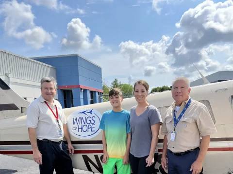 Frequent flier and future Wings of Hope pilot, Mason, stopped by our hangar after a recent appointment at St. Louis Children’s Hospital. Mason, 8, whose case of clubfeet is more resistant to treatment than most, is on his way to…